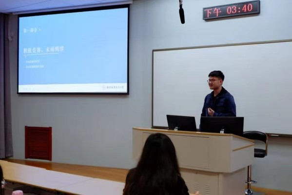 王倩分别从科研写作、学习竞赛、专业实践三个角度出发,和同学们分享了她三年研究生学习生活中的心得和经验。王倩认为,科研写作是逻辑思维、计算机操作、专业知识和文稿撰的综合呈现,她强调同学们应该在学习中注重对文献查阅能力,基本编程能力,数据处理和分析能力以及文字撰写能力的综合培养。除此之外,她还结合自身经历,鼓励同学们积极参加学科竞赛以及相关专业实践,为找到日后理想岗位奠定基础。最后,王倩希冀同学们常怀感恩之心,在研究生期间明确目标,勇挑重担,追求卓越。