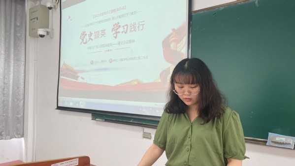 值中国共产党成立100周年之际,为传承和弘扬中国共产党人的精神谱系,6月5日下午,极速电竞 硕士20级第二党支部在将军路校区2205教室开展了“中国共产党人的精神谱系——遵义会议精神”主题党课。硕士20级第二党支部全体党员和入党积极分子参加,苏佳琪同志担任此次党课的主持人。