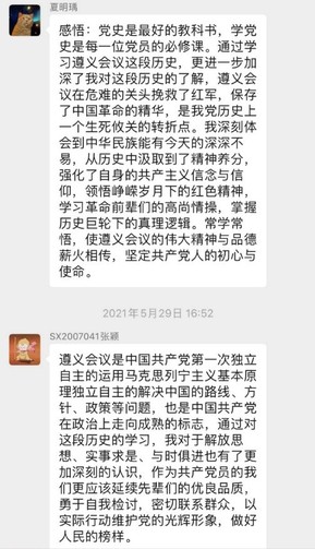支部的其他党员和入党积极分子也深受遵义会议精神的鼓舞,纷纷在微信群中发表学习体会。