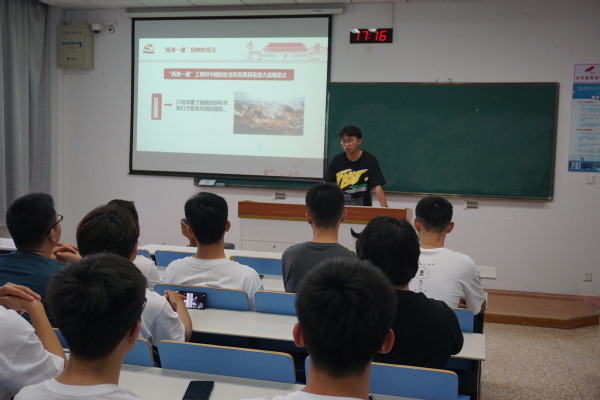 支部书记陈欢从“两弹一星”精神的内涵、“两弹一星”精神意义、继承和发扬“两弹一星”精神三个方面向支部成员讲授专题党课。陈欢指出,“两弹一星”精神凝聚着科技工作者报效祖国的满腔热血和赤胆忠心,反映出他们坚定地理想信念和崇高的精神境界,是新时期推动我国社会主义建设事业不断发展的强大精神力量。作为新时代民航学子,更要深刻感悟“两弹一星”精神内涵,汲取前行奋斗力量,抓住行业发展机遇,继往开来、接续奋斗,矢志不渝为民航强国建设添砖加瓦。