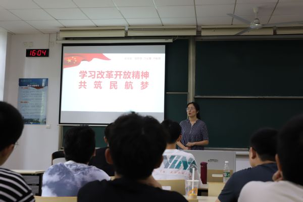 王艳围绕“中国的改革开放”、“中国民航的发展”两部分,详细讲述了改革开放史基本脉络、改革开放的业绩与成就、民航发展重大事件及成就、民航教育科技发展等内容,理论内涵丰富、具体事例详实。王艳指出,新时代民航青年要学习掌握行业动态和最新发展理念,提升素质本领,树立远大理想,明晰职业规划,了解发展路径。鼓励同学们主动了解专业相关的一线操作流程,在日常学习和今后工作中,勇于实践和动手操作,学好专业知识,增强专业技能。