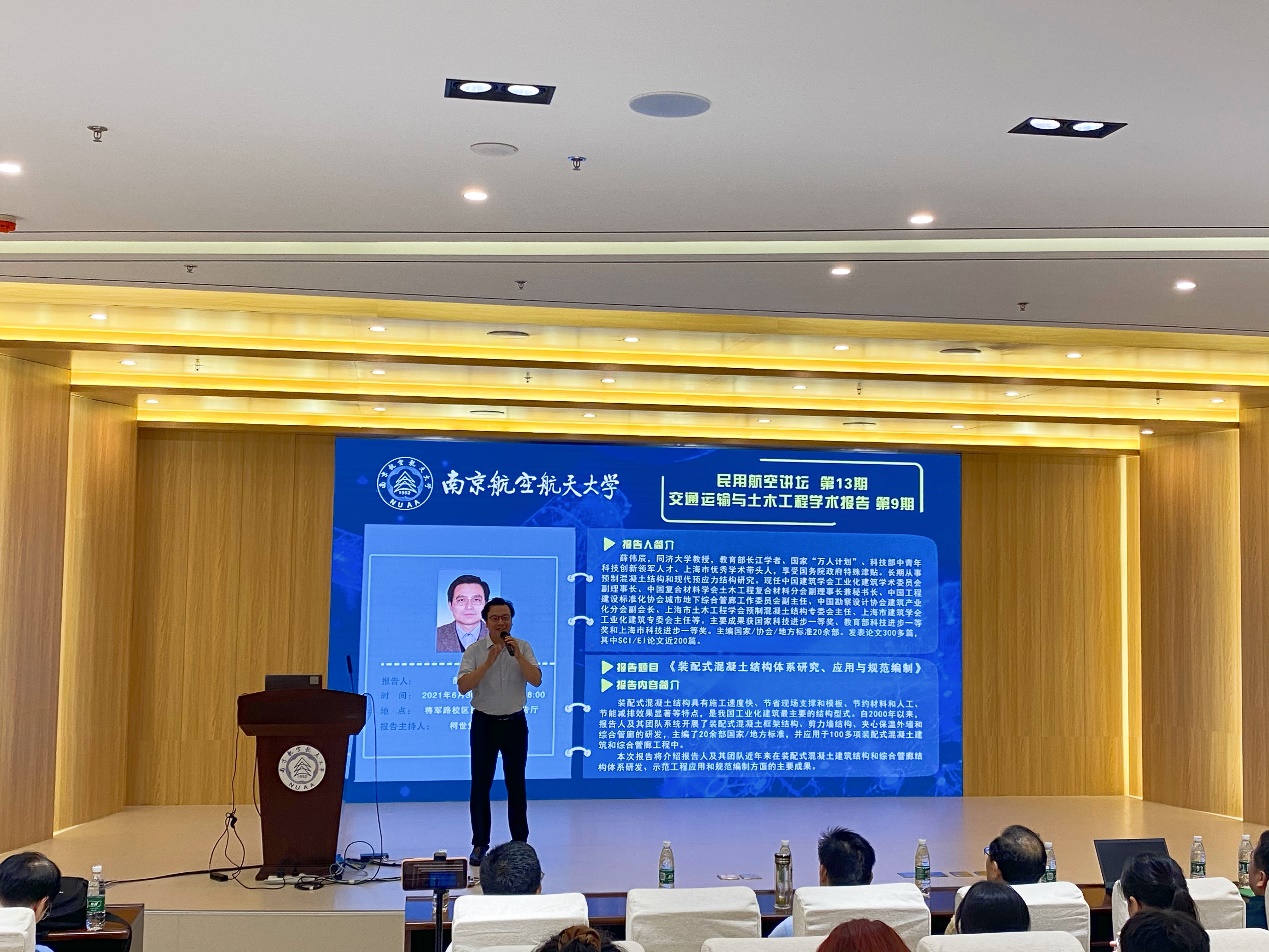 薛伟辰教授做了题为《装配式混凝土结构体系研究、应用与规范编制》的学术报告,内容主要介绍了装配式混凝土结构体系的研究背景,回顾了其团队近年来在装配式混凝土建筑结构和综合管廊结构体系研发、示范工程应用和规范编制方面的主要成果,着重强调研究要聚焦于实际工程需求,报告结束后薛教授与现场师生做了广泛的交流。