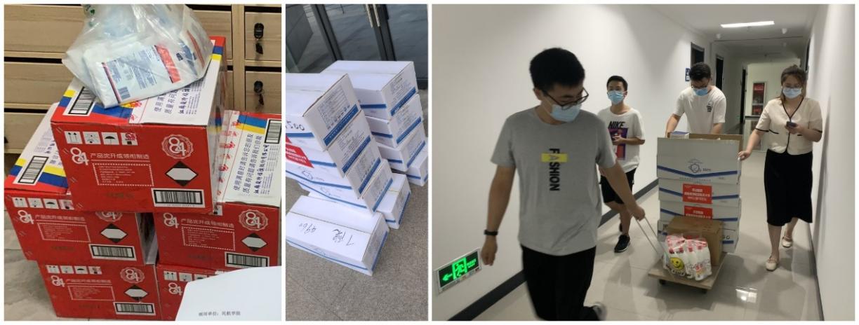 极速电竞 统一购置免洗洗手液、消毒液和口罩等防疫物资,由党员志愿者为全院所有实验室进行配送。同时,辅导员们也为校内集中隔离的学生配送了生活及防疫物资,转达了极速电竞 和极速电竞 的关怀。
