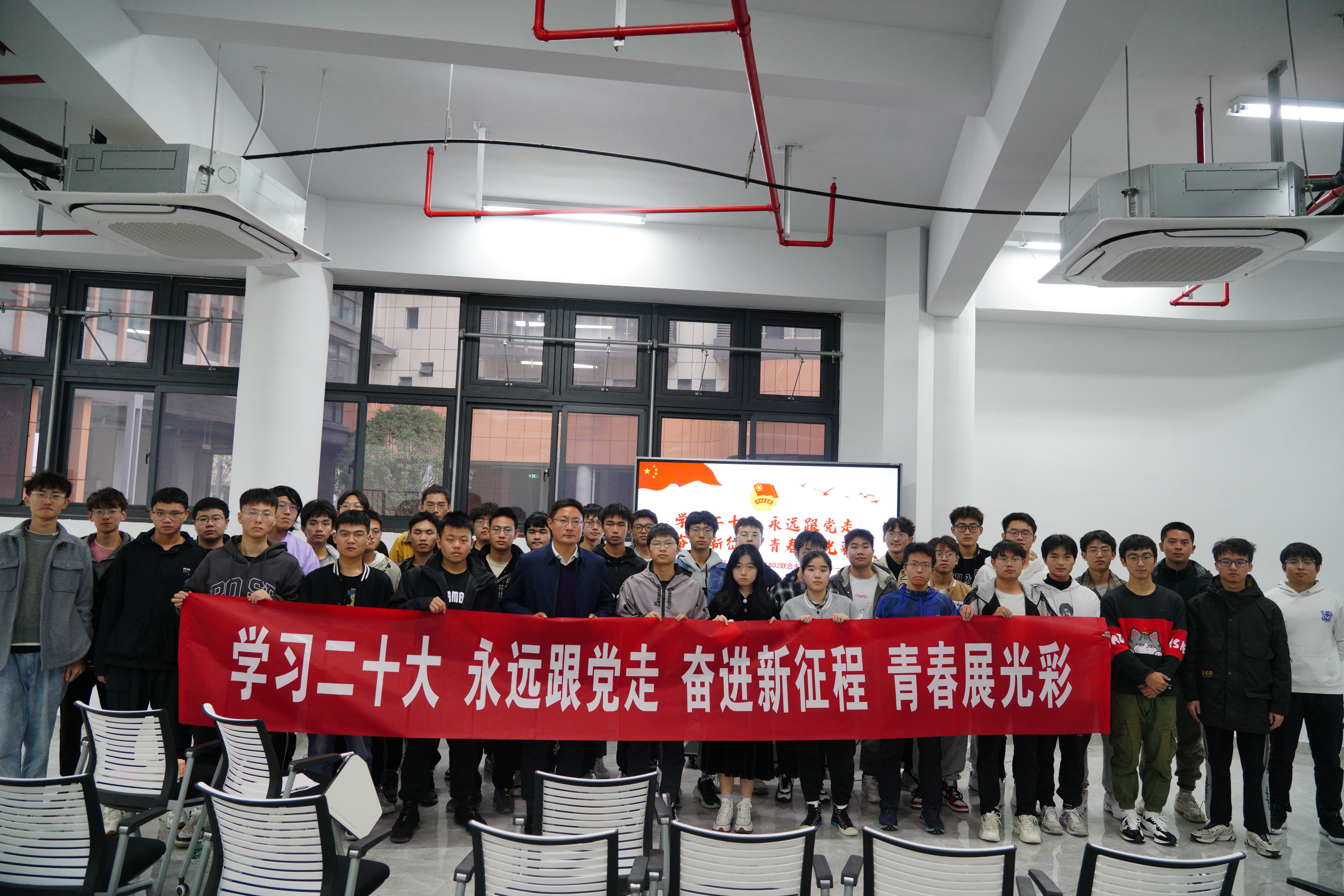 1118日下午,极速电竞 07218010721802团支部联合开展了“学习二十大、永远跟党走、奋进新征程、青春展光彩”主题团日活动。活动分为领导干部指导学、支部书记带领学、校区建设实地学三个环节。天目湖校区党工委书记王伟华,天目湖校区项目管理办姜开峰、马丽佳,极速电竞 2021级辅导员王金璐参加了本次活动。