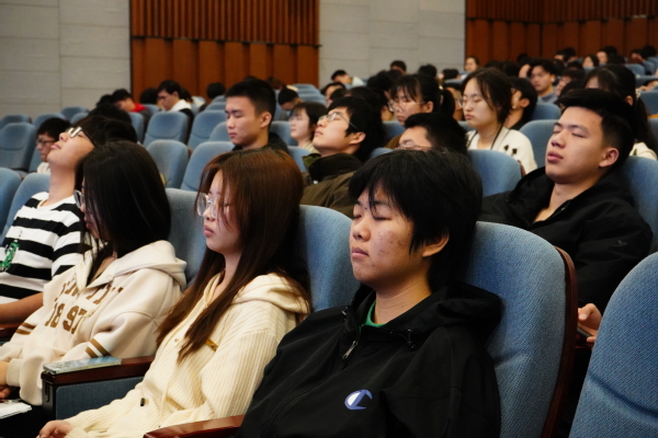 其中,王俊丽还带领同学们进行了简短的深呼吸静观,让同学们花一些时间感受自己的呼吸,带着爱与善意思考,关注自己本身的感受。最后,王俊丽向同学们介绍了校内外的心理健康资源,本次讲座在轻松积极愉悦的氛围中结束。