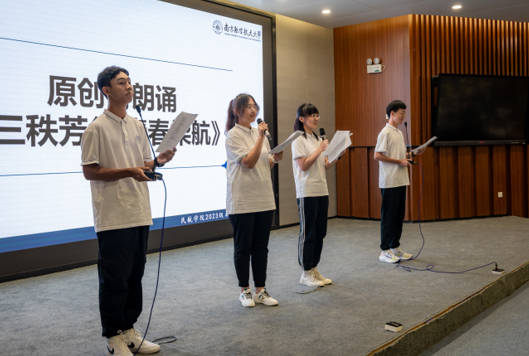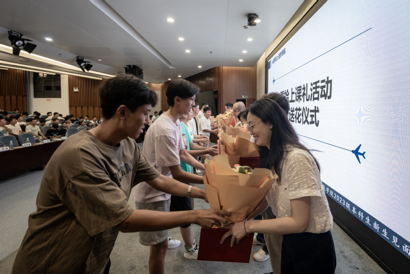 随后,新生代表为班主任们送上鲜花,同学们全体起立鞠躬,以齐声祝福的方式感谢师恩。2023级新生代表献上原创诗朗诵《三秩芳华,青春柒航》,同学们情绪饱满、声音洪亮,深情表达对民航事业的热爱和对极速电竞 建院三十周年的祝福。