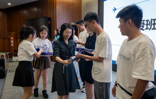 李君为各班授班旗,勉励同学们作为“强国一代”,要以一往无前的奋斗姿态把个人的理想、时代的责任融入学习成长全过程,胸怀家国、志存高远,厚植民航情怀、练就过硬本领,让青春翱翔于祖国的蓝天。