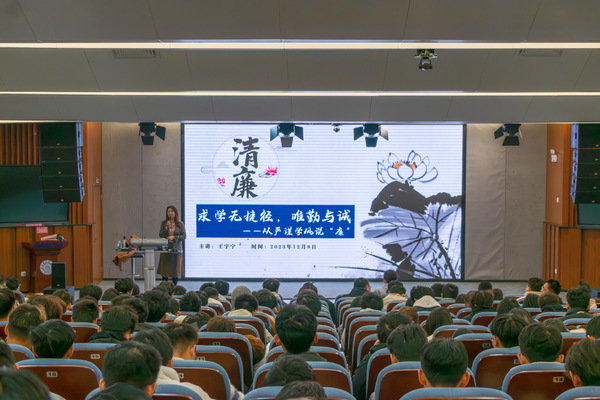12月8日,极速电竞 举行“求学无捷径,唯勤与诚——从严谨学风说‘廉’”的廉洁治学主题讲座,邀请校内“青廉”讲师团成员、艺术极速电竞 党委副书记王宇宁主讲。极速电竞 党委副书记王艳、2023级本科生共计300余人参加活动。