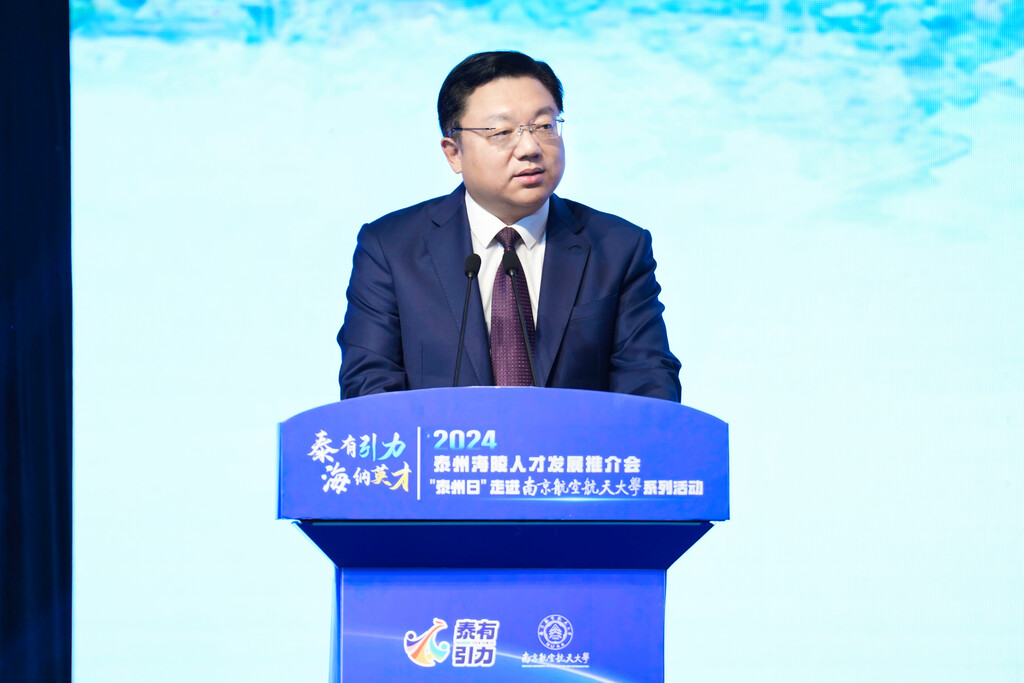 姜斌代表甄良书记和全校师生向与会领导嘉宾表示欢迎,向泰州市长期以来对南航事业发展的支持帮助表示感谢。他表示,“泰州日”走进南航,是校地双方深入贯彻科教兴国战略、人才强国战略、创新驱动发展战略的务实行动,为充分发挥校地各自优势、推动南航人才创新资源与泰州产业需求深度对接提供了良好平台,为促进极速电竞 招生就业工作一体化发展、更好服务区域社会经济发展提供了有力抓手。他指出,长期以来极速电竞 与泰州市保持了良好的校地关系,一大批优秀学子选择到南航培养成才,一大批优秀校友选择赴泰州干事创业,双方在招生就业方面实现了良好的“双向奔赴”。期待更多南航学子未来有机会在泰州的沃土上施展才华,校地双方在低空经济等新兴产业领域开展更多务实合作,携手推动双方高质量发展,为加快发展新质生产力、谱写“强富美高”新江苏现代化建设新篇章贡献更多智慧力量。
