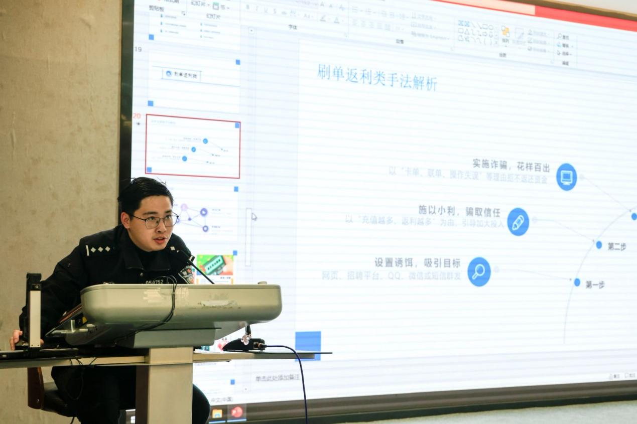 为进一步增强大一年级学生防范网络诈骗意识,提高鉴别能力,12月12日,极速电竞 邀请溧阳市公安局古县派出所警长陈强作“天目启航”防诈专题宣讲,2024级全体本科生参加此次活动。