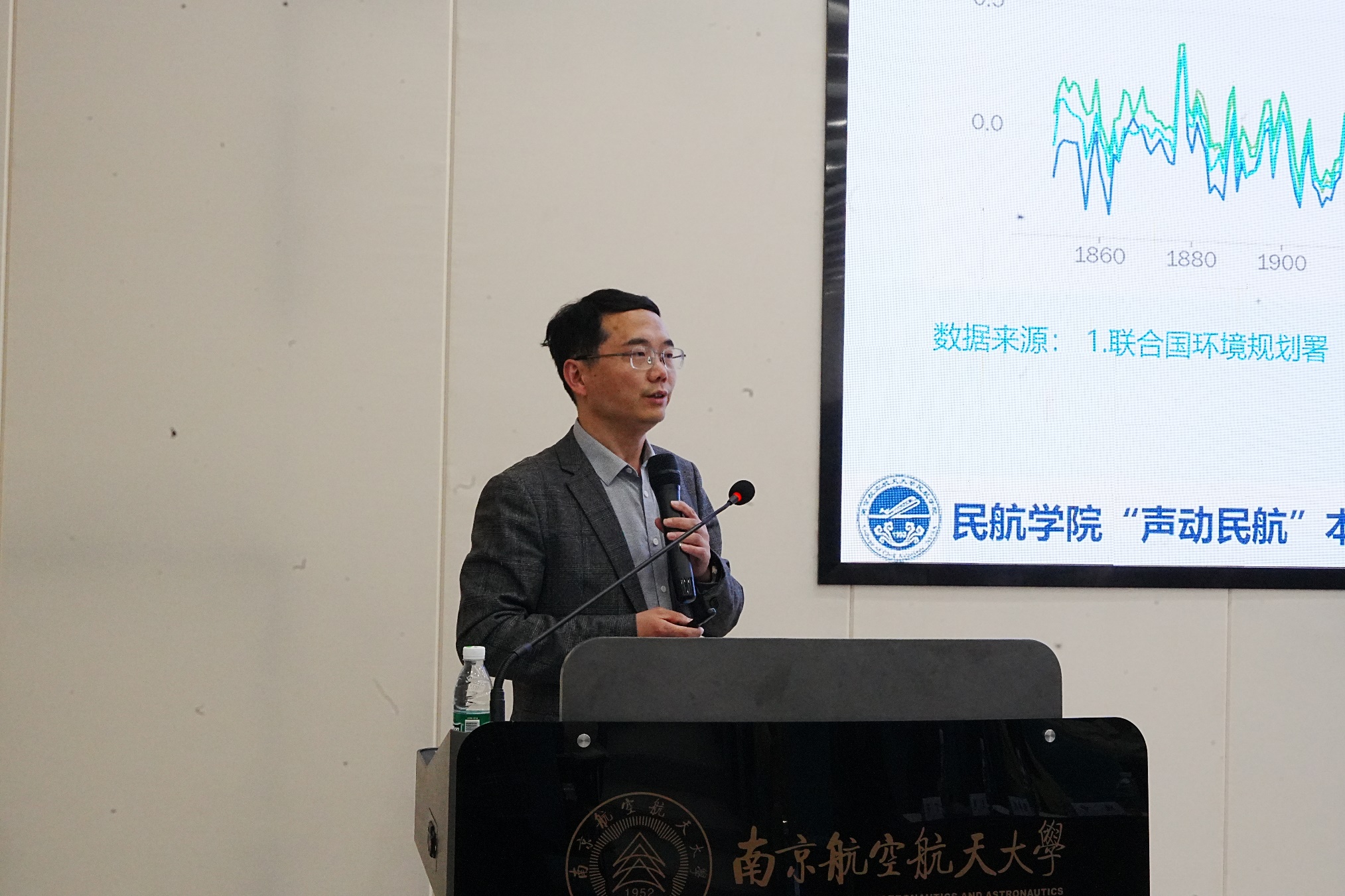 张卓然立足行业发展前沿与国家战略需求,对绿色航空发展的必要性与紧迫性进行系统阐述,并从绿色飞机、绿色机场和绿色飞行三个维度解读航空产业低碳转型的技术路径。他向同学们介绍了飞机电力系统的组成和功能,着重分析多电/全电飞机、电推进飞机的技术优势,并以此为引入介绍航空电气化背景下绿色航空的发展路线和应用前景。