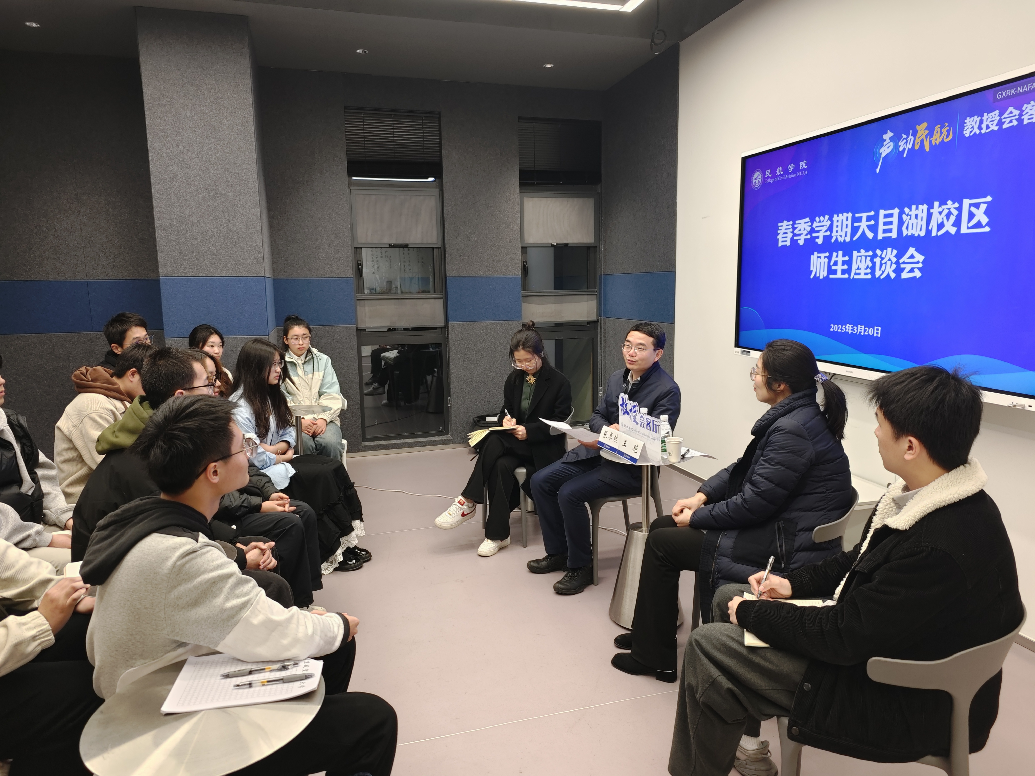 讲座后,极速电竞 分别组织召开春季学期天目湖校区师生座谈会和民航工程系师生座谈会,系统调研同学们关于学风建设、科创竞赛、课程设置、生涯规划、文体活动等方面的困惑并给予指导。