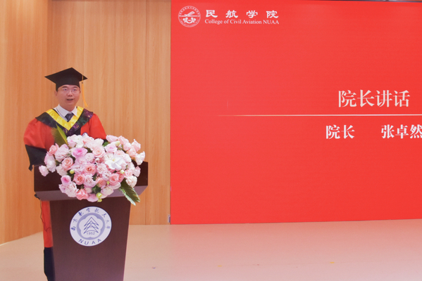 张卓然对即将踏上人生新征程的221名毕业生表示祝贺,向多年来倾心指导的导师、关心支持的教职工、默默付出的家长致以感谢,对毕业生投身民航、服务国防的担当表示肯定,他勉励同学们在未来岗位上,以“顶天”之志勇闯“无人区”,以“立地”之心筑牢“生命线”,以“开拓”之姿拥抱“新赛道”,弘扬奋斗者精神,为中国式现代化建设注入新动能!