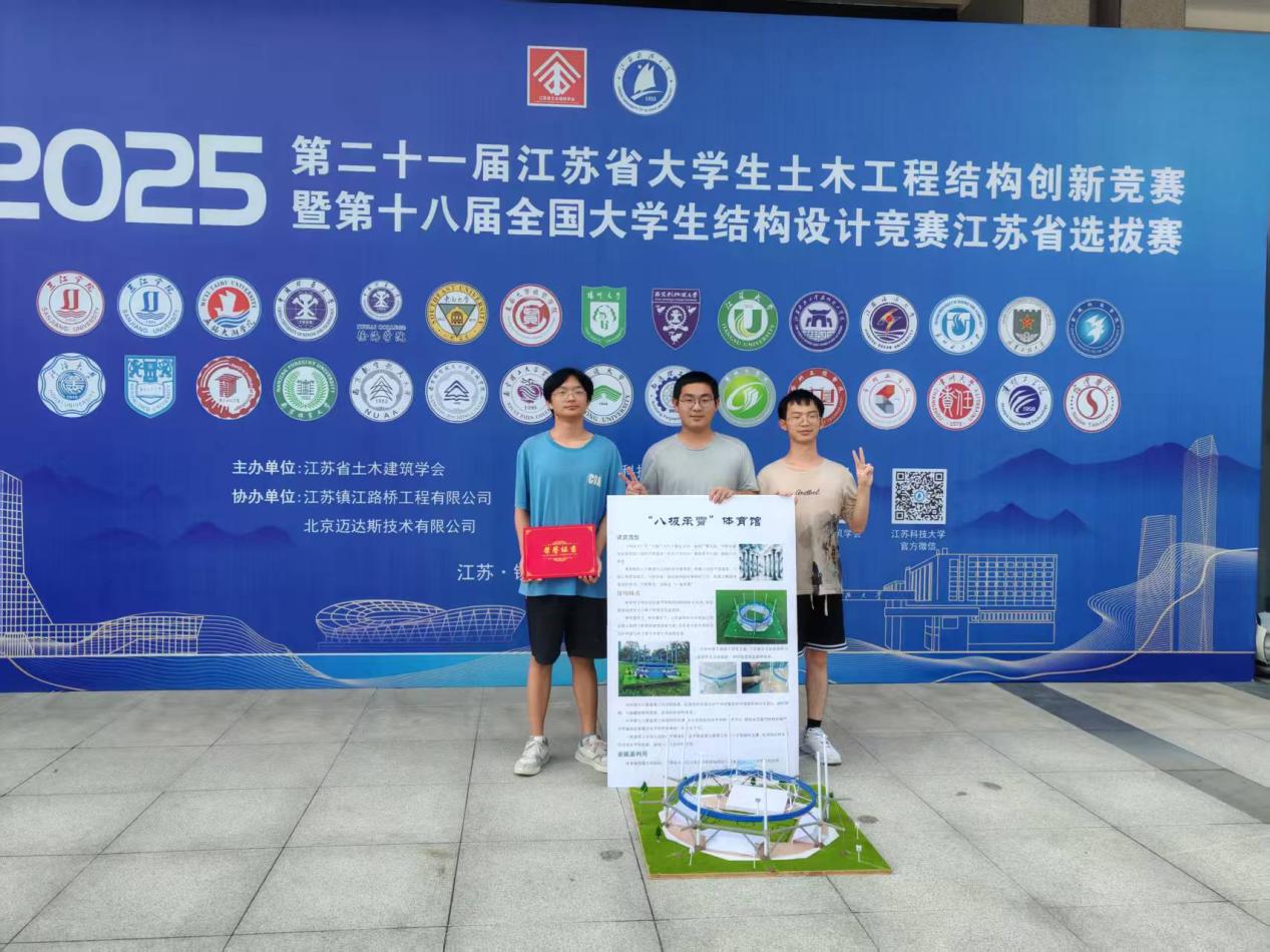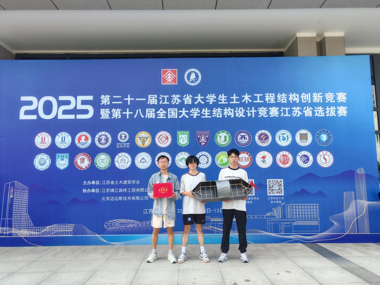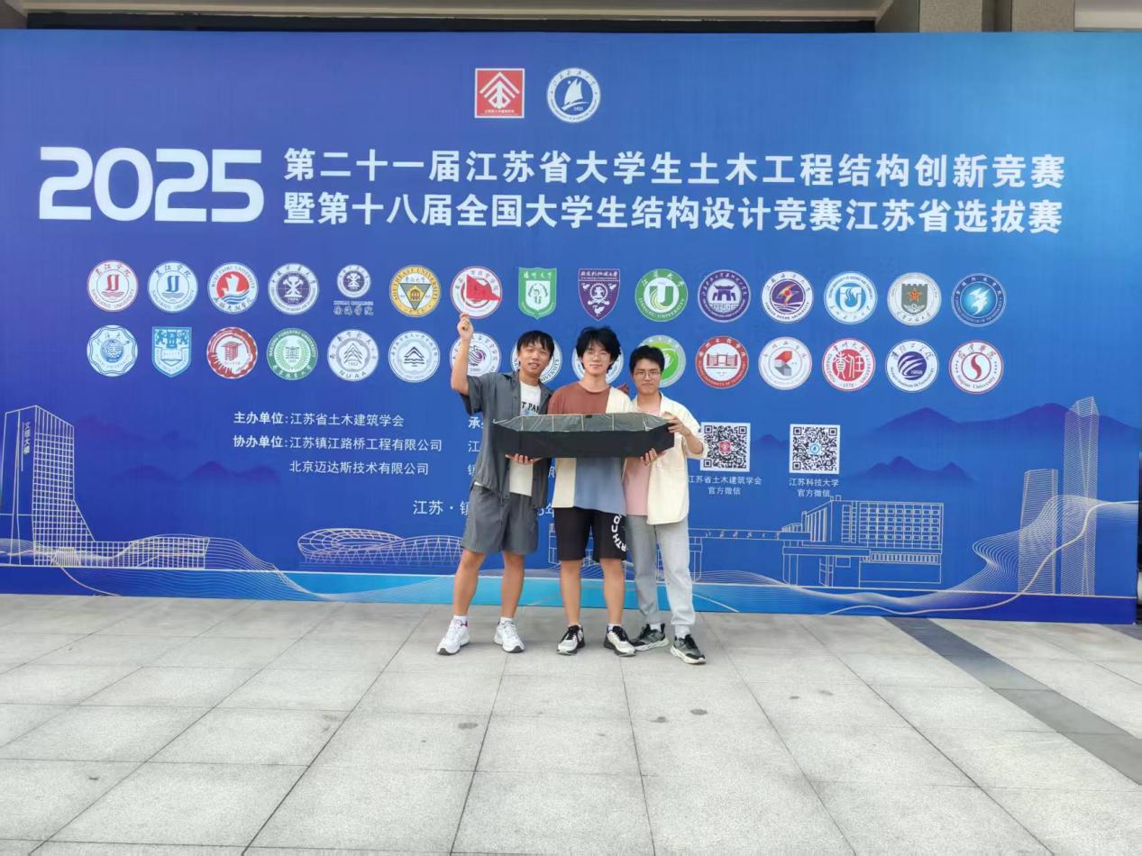在刚刚落幕的2025年江苏省大学生土木工程结构创新竞赛暨第十八届全国大学生结构设计竞赛江苏省选拔赛中,极速电竞 土木学子再创辉煌,荣获模型加载组特等奖1项(总排名第2名)、二等奖1项,以及模型展示组一等奖1项(总排名第5名)。