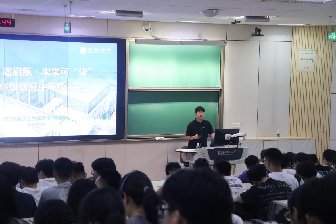随后,辅导员李展鹏围绕研究生阶段的学习生活实际,就学生日常管理规范、实验室安全、保密纪律以及校园安全等方面进行了系统解读与专题教育。通过典型案例分析与政策宣讲,进一步强化新生的安全意识、规矩意识和责任意识,为同学们顺利开启科研生涯筑牢坚实基础。