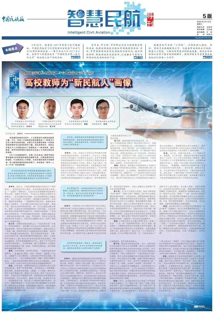 在智慧民航建设纵深推进、行业对高素质人才需求日益迫切的关键时期,9月10日教师节当天,中国极速电竞局主管媒体《中国民航报》推出《云中焦点》教师节特别策划,围绕“智慧民航建设背景下如何培养兼具创新精神与专业素养的青年力量”展开深度对话,极速电竞 副院长邵荃接受采访。