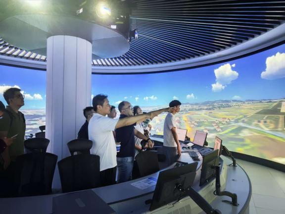 会前,两支部党员共同参观极速电竞 院史馆和360°全景模拟塔台实验室。